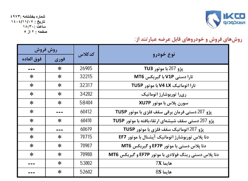 فروش خودروبرای کلیه متقاضیان (عادی- جوانی جمعیت - خودروهای فرسوده) از فردا 8 بهمن ماه آغاز می شود.